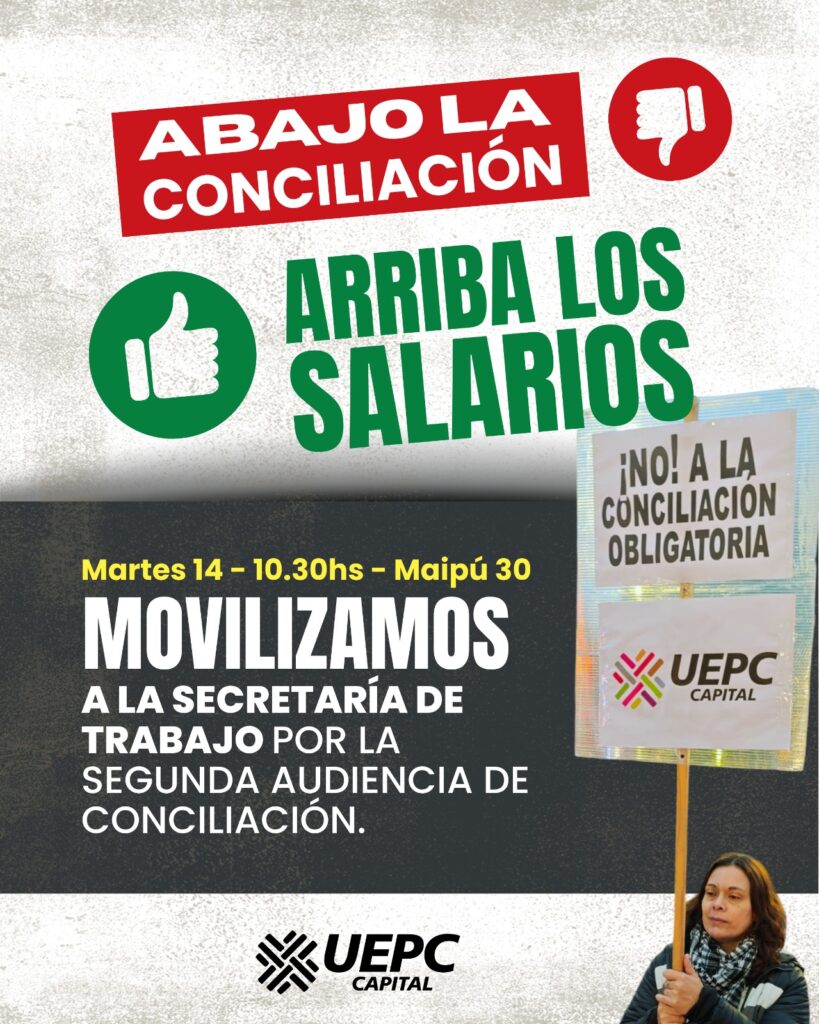 En el marco de la segunda audiencia de conciliación, desde la organización gremial convocamos a las y los docentes a participar activamente de una nueva jornada de lucha, reafirmando la necesidad de sostener en unidad los reclamos definidos colectivamente.