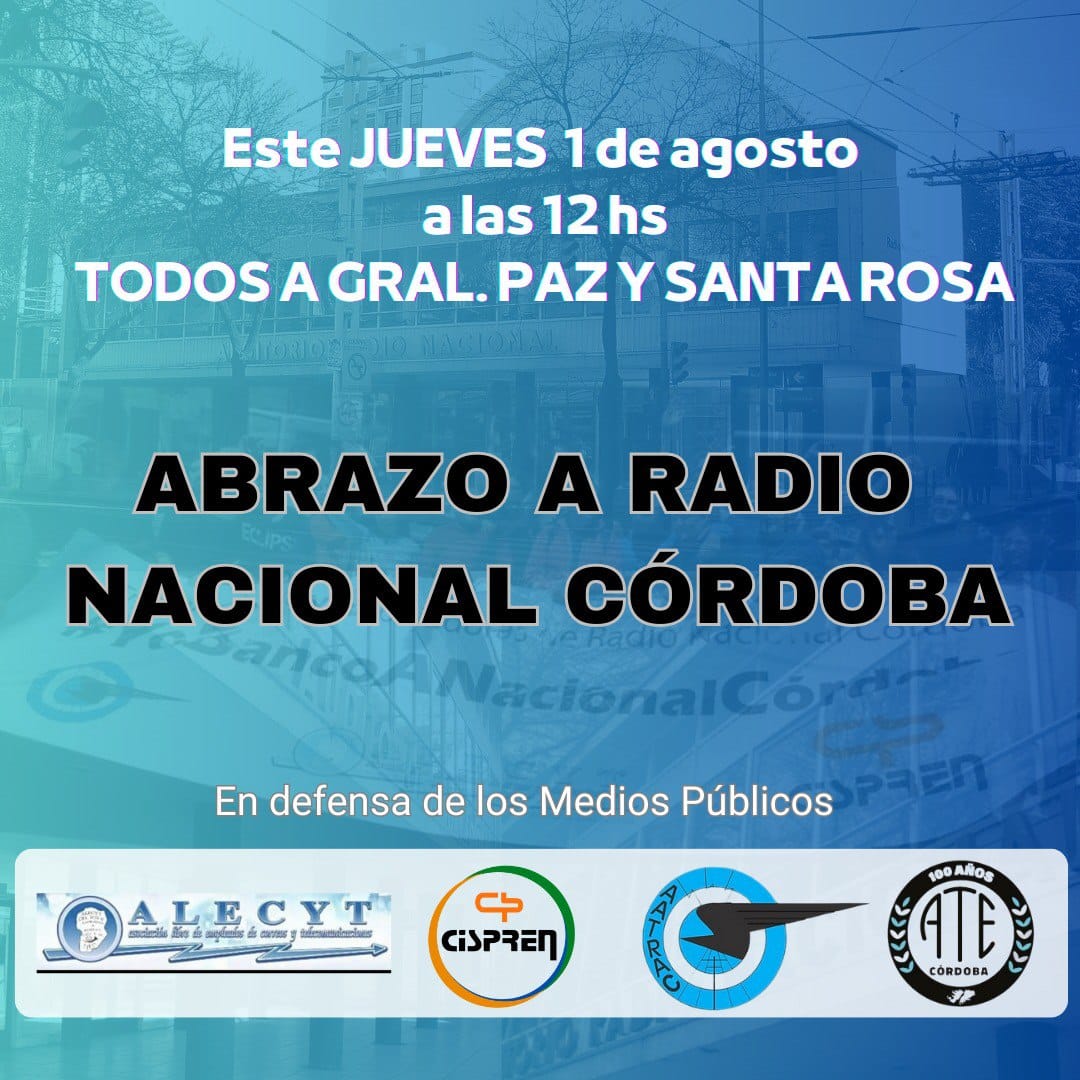 ESTE JUEVES 1 DE AGOSTO A LAS 12 HS. ABRAZAMOS RADIO NACIONAL CÓRDOBA📍Gral Paz y Santa Rosa.