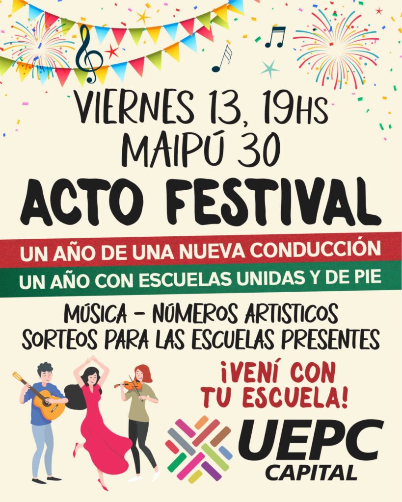 El evento celebrará el primer aniversario de la gestión de la Lista de Unidad que ganó la Delegación Capital del sindicato UEPC.