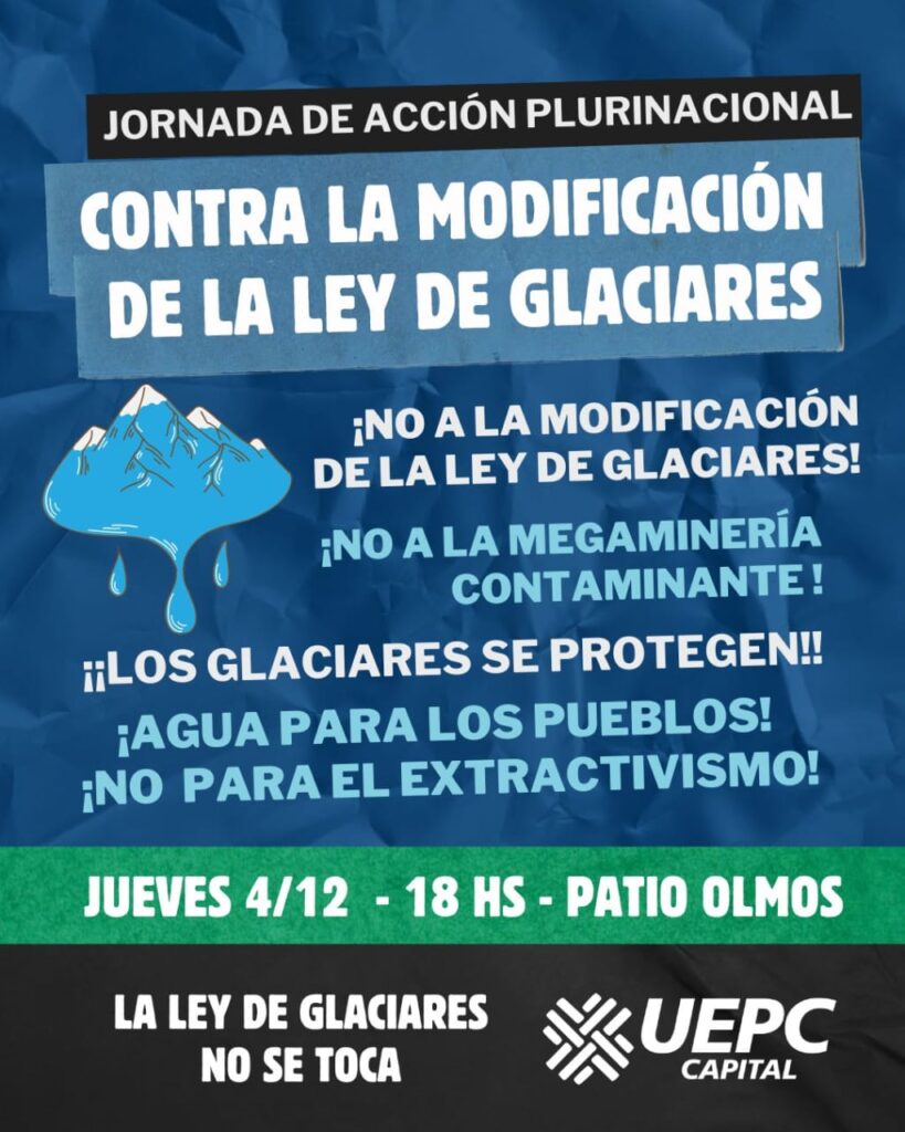 Desde UEPC Capital adherimos a las acciones que ocurrirán este 4 de diciembre en Córdoba, en el interior de la provincia y en cada territorio de lucha en defensa de los glaciares.