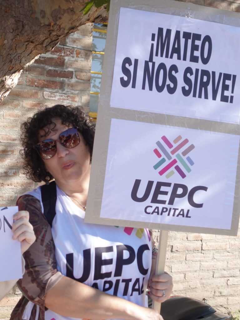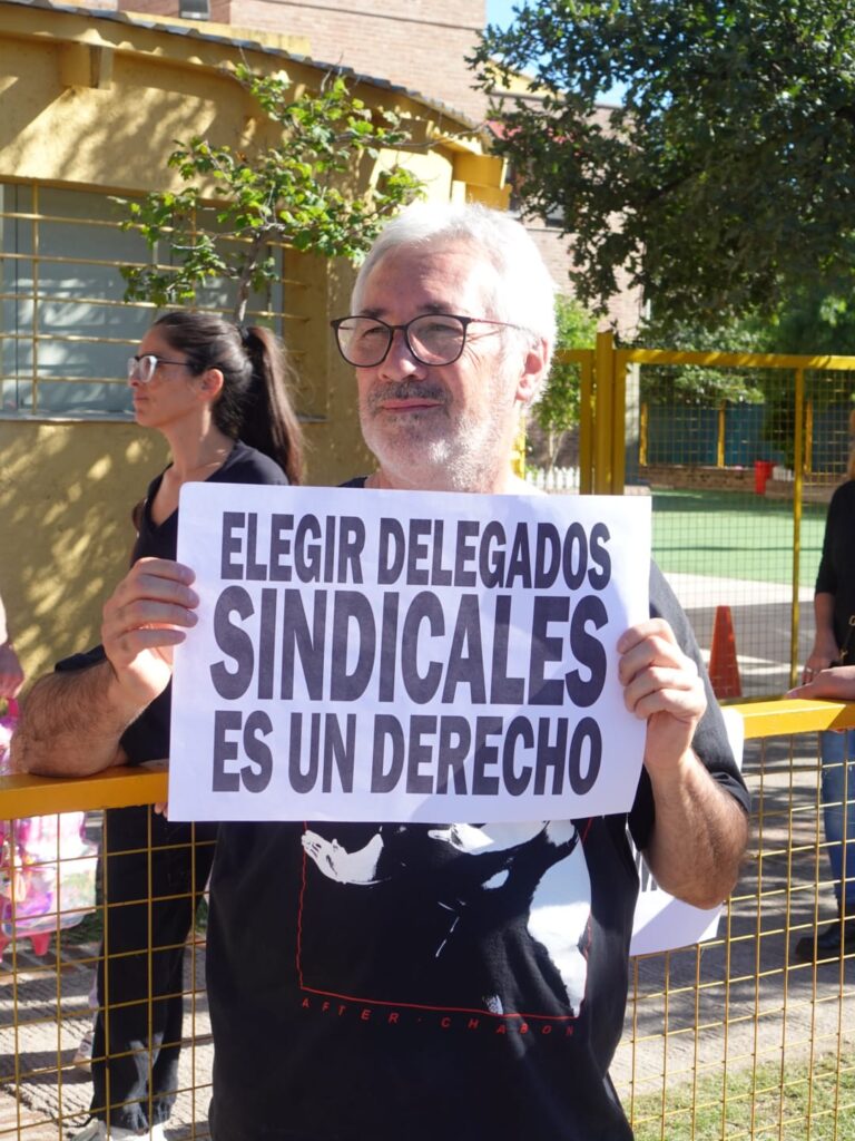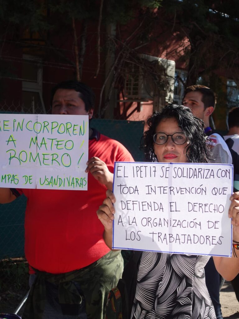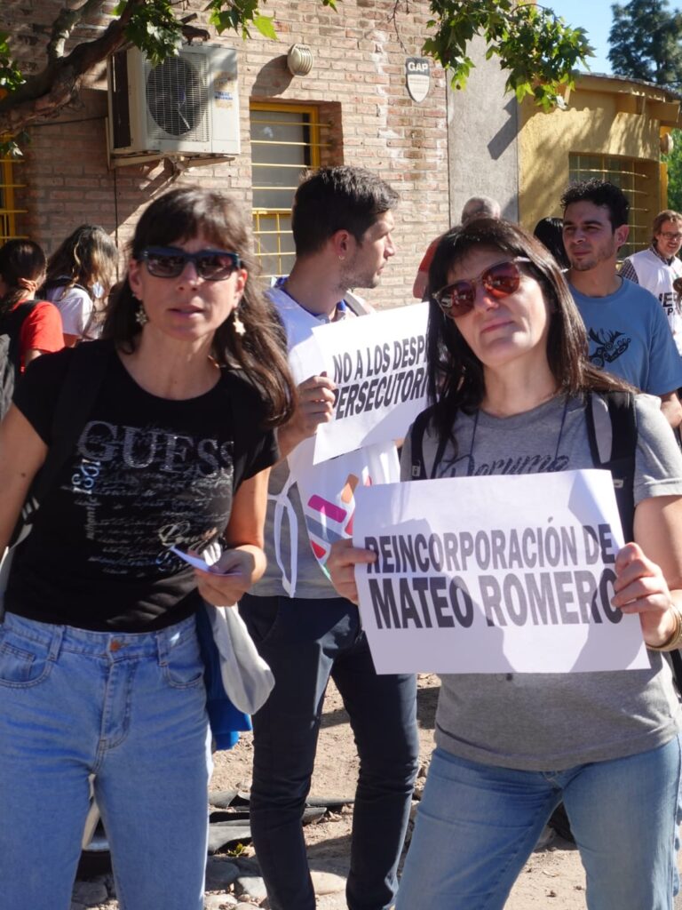 La convocatoria se planteó en defensa de los derechos laborales del docente Mateo Romero, quien fuera separado de su cargo de manera arbitraria por la institución, luego de que la docencia intentara organizarse para contar con delegados escolares.