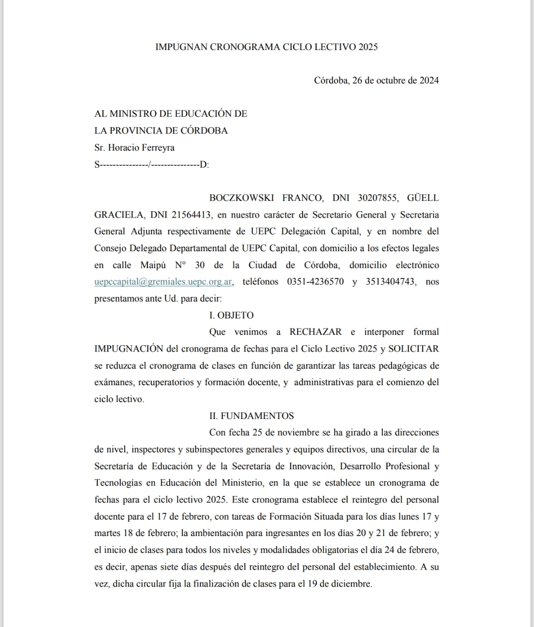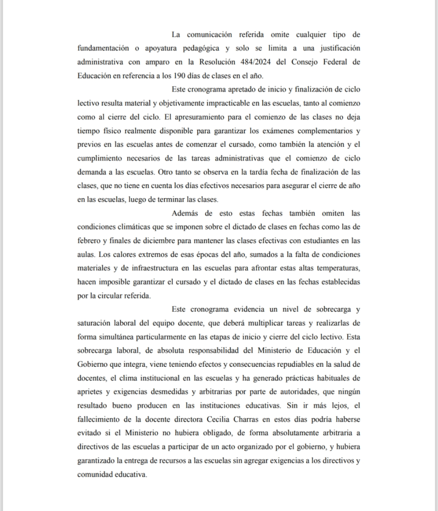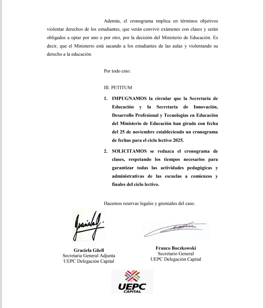 Desde UEPC Capital, expresamos nuestro rechazo categórico a esta decisión inconsulta y arbitraria, que no contempla las necesidades de quienes conforman el sistema educativo. Impugnamos esta medida por considerarla una clara falta de planificación y sensibilidad hacia la realidad climática y laboral. Instamos al gobierno a reconsiderar esta propuesta, dialogar con los actores educativos y garantizar condiciones dignas para el desarrollo de las actividades escolares.