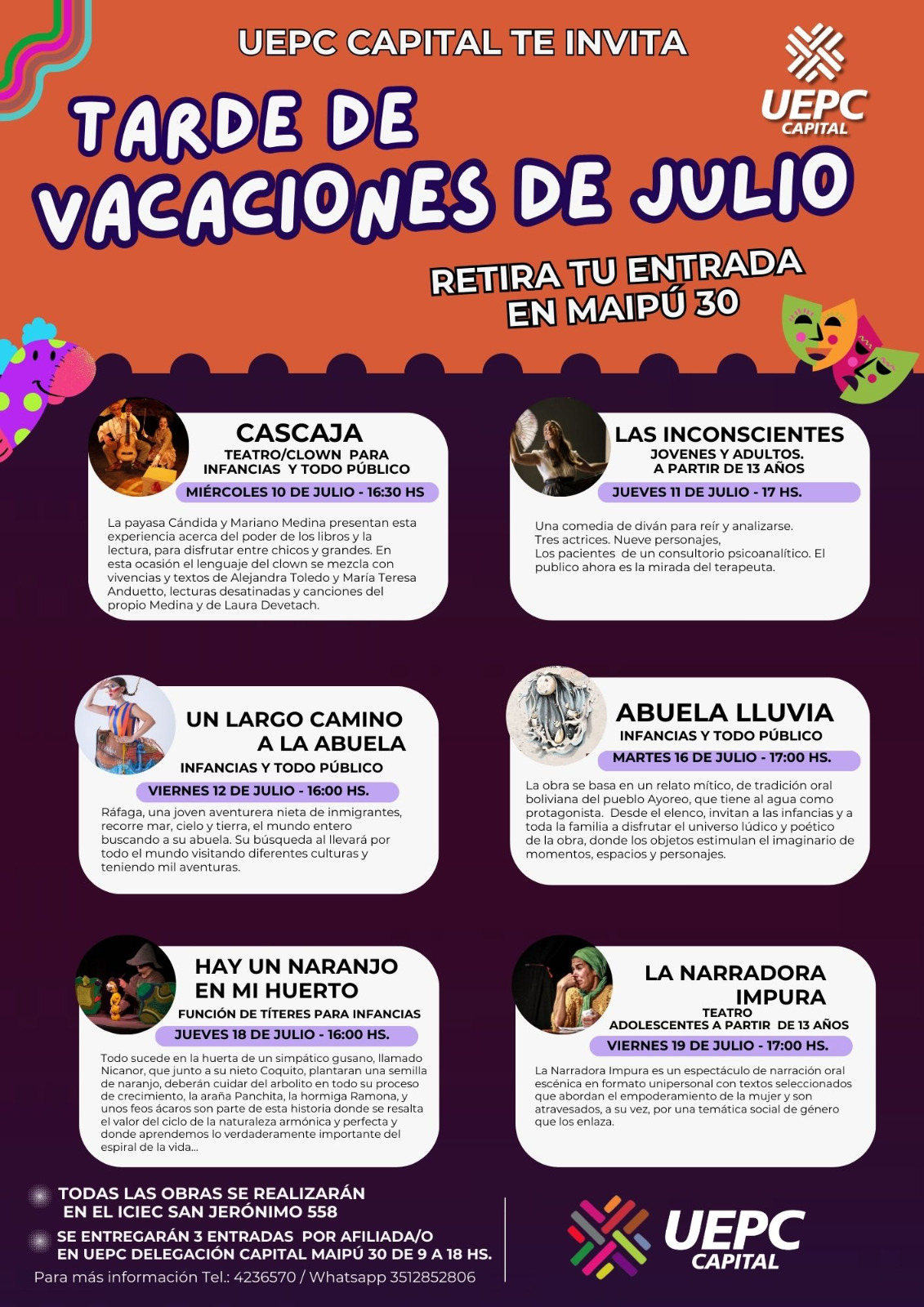 Te invitamos a compartir obras de teatro, clown y títeres para todas las edades.